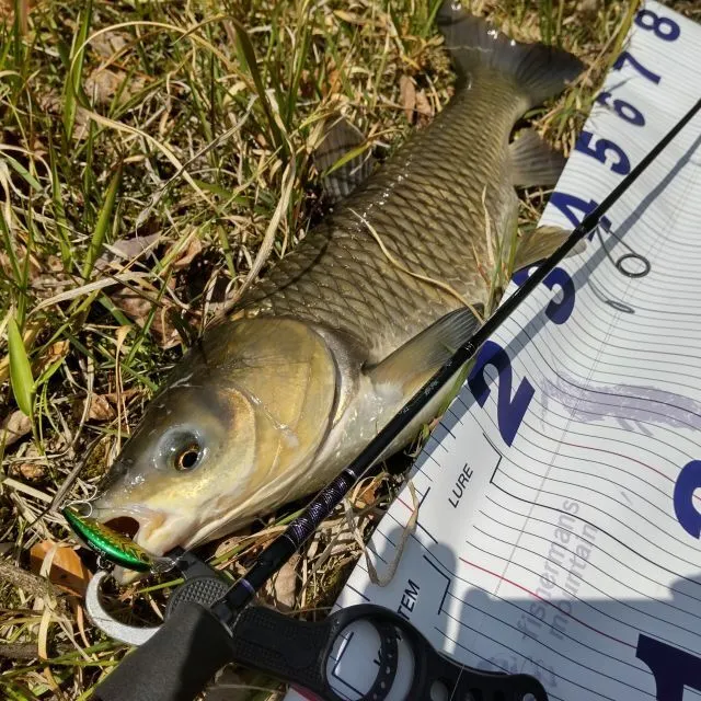 約70cmほどのソウギョで、初めての釣果でした。