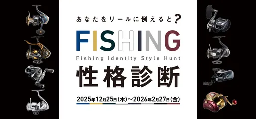 あなたをリールに例えると?FISHING性格診断 本診断は2026年2月27日(金)17:00をもちまして終了とさせていただきます。---|概要釣りに関する12問の質問に回答することで、参加者の性格をリールに例えて診断いたします。また、フィッシングショー(横浜・大阪のみ)DAIWAブース受付で、診断結果の画面をご提示いただく
