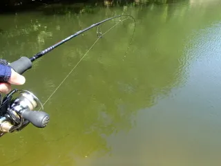 2025年EXIST釣果振り返り 少し早いですが、2025年のEXIST使用時の思い出の釣果を振り返りたいと思います。5月のGW釣行で、初めて訪れる山間部の野池でプラグをトゥイッチしていたら、フッキングと同時にすごい勢いでラインが出されてHEARTLAND 702UL+FS-ST23が弧を描きました。寄せては走られ、寄せては走られを